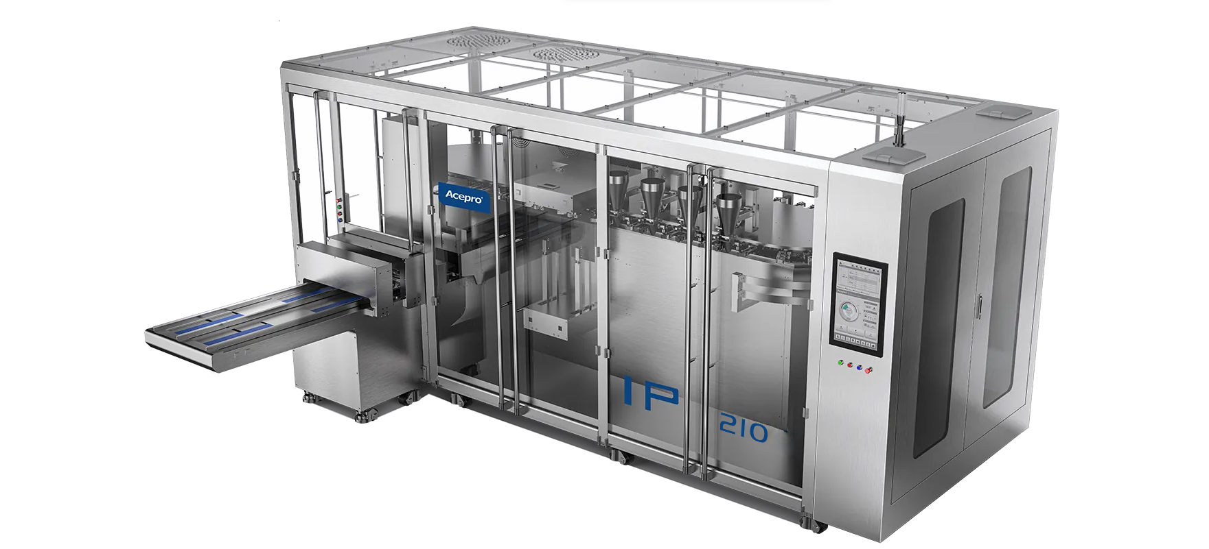 上海欧朔生产的柔性化水平给袋式包装机, 支持一键式换产,跟随式下料,生命周期管理,OEE效率提升,兼容大范围尺寸及人机交互界面等功能,为您的包装提供更加智能的解决方案.