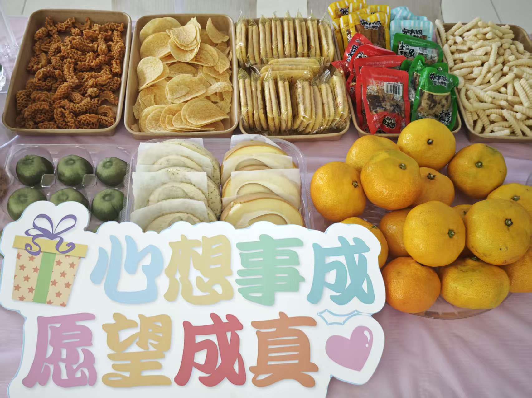 游戏过后,一碗碗热气腾腾的“定制长寿面”被端上餐桌。每碗面里都藏着一颗溏心蛋,寓意“圆圆满满”,同事们边吃边调侃:“这可能是我们吃过最‘长’寿的面!”桌上还摆满了坚果、水果、巧克力等零食,大家边吃边聊,分享着工作中的趣事与生活点滴。
