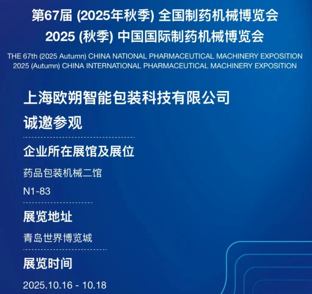 查看更多2025秋季药机会启幕青岛,上海欧朔邀您共赴制药机械盛宴!时间:2025年10月16日-10月18日 地点:青岛世界博览城